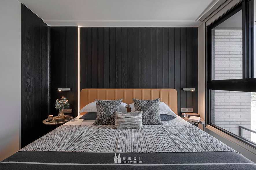 主臥——闃黑木紋雕刻理性俐落端景 跳色輕盈亦能醞釀靜謐氛圍