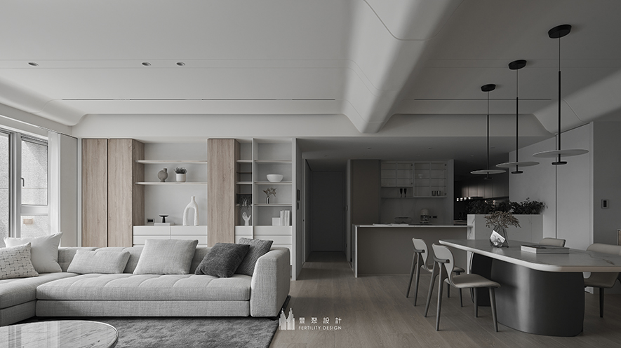一踏入這片場域,彷彿被柔和的光影輕撫,讓時間慢下腳步緩緩流動,洗滌疲憊,得以擁抱片刻屬於自己的療癒時光。整體空間選用柔和的米白與淺灰為基底,佐以木質的溫潤語境,營造出如詩般的寧靜優雅氛圍。這不只是空間設計的展現,更是展開生活的序章,靜候居者將日常片段書寫成獨一無二的家居詩行。門扉開啟,將所有的疲憊與喧囂留在門外,那份安心與喜悅就在此刻悄然成真——「回家,轉動鑰匙打開門的期待。」
