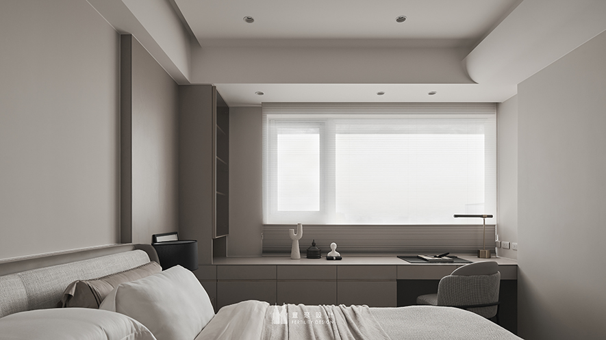 床頭櫃旁柔和燈光悄然亮起,輝映著潔白床品,如月色灑落,為空間披上一層夢幻薄紗。每一處細節皆精緻雕琢,不論是蘊藏實用智慧的書桌,或整體房間淡雅的灰白色調,皆牽引內心回歸平和,將塵世的疲憊輕柔安放,在這片刻寧靜中,尋回久違的安然與自在。