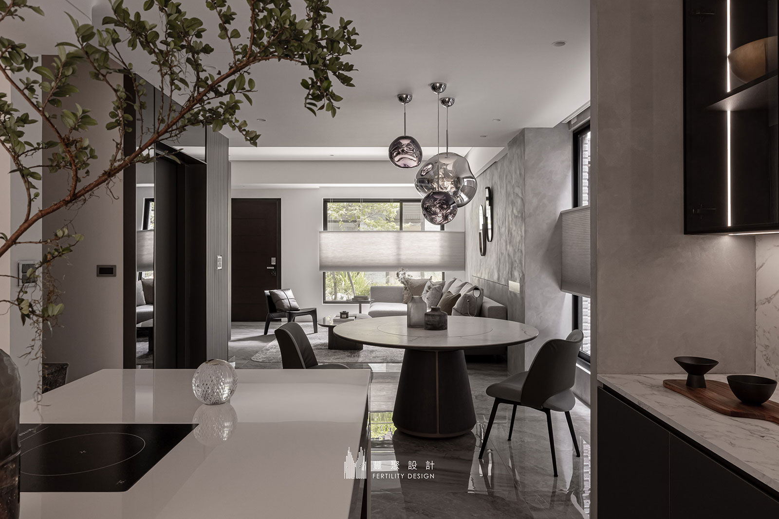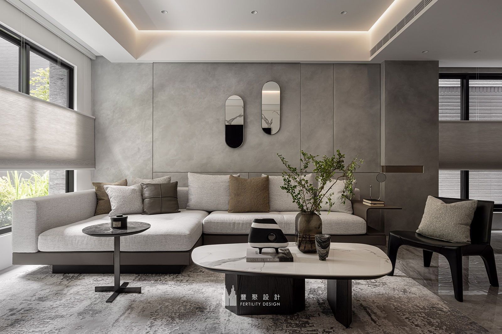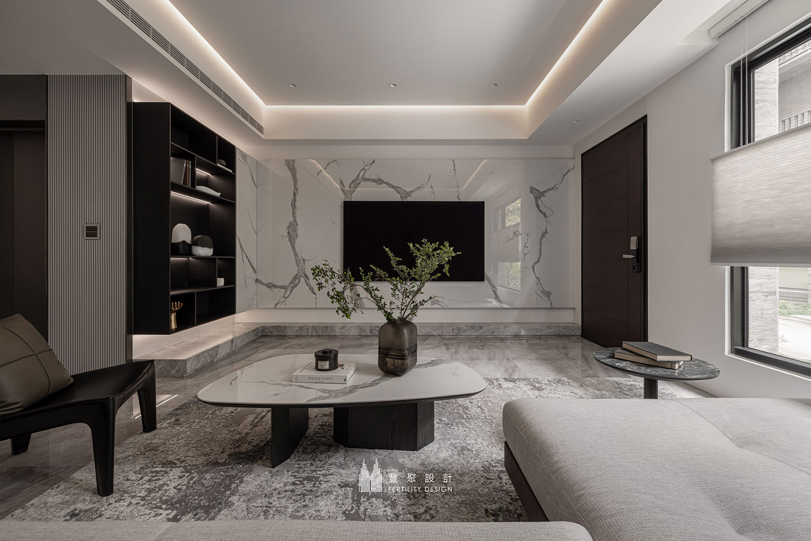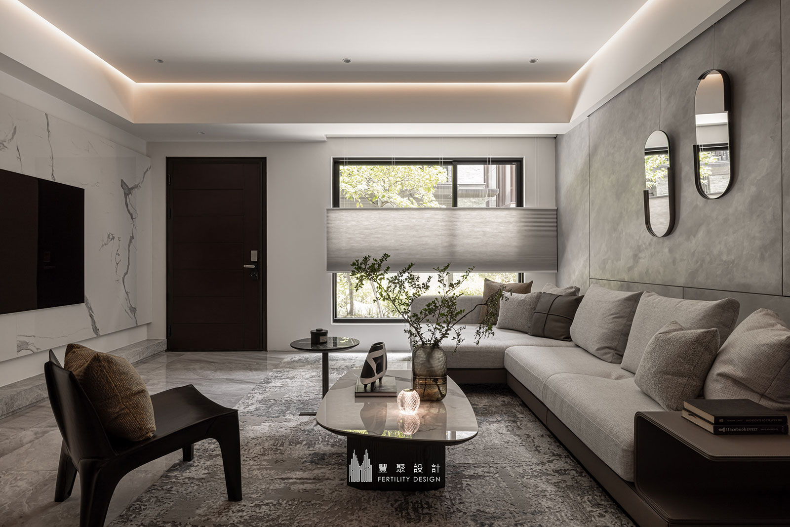 主要建材:石材、義大利大板磚、鍍鈦金屬、訂製鐵件、玻璃磚、義大利特殊漆、金屬漆、灰鏡、茶鏡、灰玻、進口系統板材、進口五金、超耐磨木地板、訂製家具、原廠燈具、電動窗簾、裱皮革板、進口磁吸把手、無醛屋工程